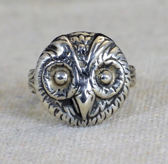 Owl Ring, Owl Face Ring, Silver Owl Ring, Owl Jewelry, Bird Ring, Animal Ring, Statement Ring, Vintage Owl Ring, Sterling Owl Ring, Owl Ring by Alaridesign