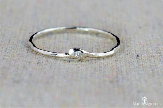 This thin free-form silver band is set with a dainty 1.5mm CZ Diamond conflict free cubic zircon - April’s birthstone! These rings are beautifully worn alone or worn together in clusters.