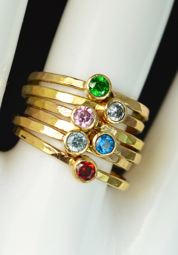 Grab 6 Hammered 14k Gold Filled stackable mothers rings with birthstones of your choice.