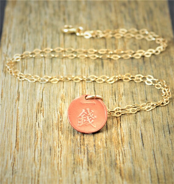 Japanese Coin Necklace, Dusky Rose Coin Necklace, Coin Art, Japanese Art, Bronze Coin, Japanese, Boho Necklace, Two-Sided, Coin Charm, Charm by Alaridesign