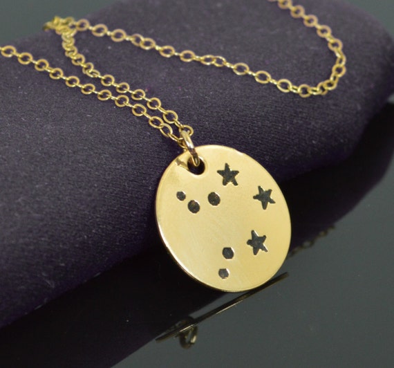 This pendant is created entirely in my studio, the Libra Constellation is deeply cut into the Gold Filled pendant. Each pendant will be slightly different.