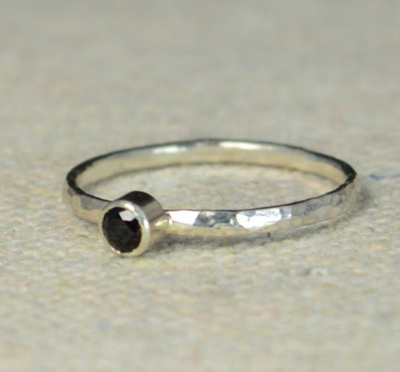 Natural Black Spinel Ring, Sterling Silver Solitaire, Black Stone Ring, Silver Jewelry, Black Solitaire, Solitaire Ring, Classic Silver Band by Alaridesign