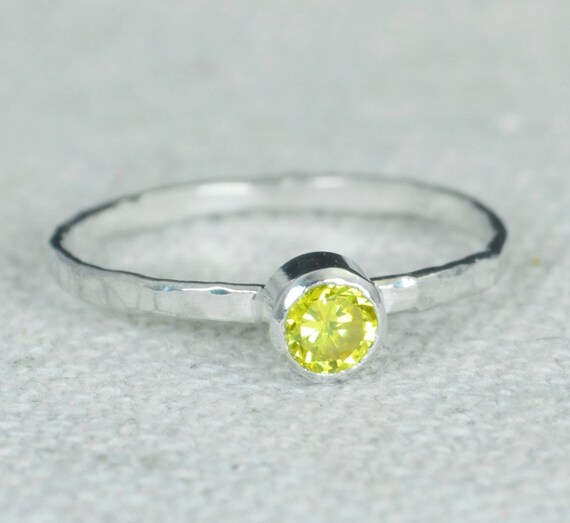 These small rings make add a flash of silver and color to your life. This silver band is set with a small 4mm Golden Topaz conflict free cubic zircon - November’s birthstone! These rings are beautifully worn alone or worn together in clusters.