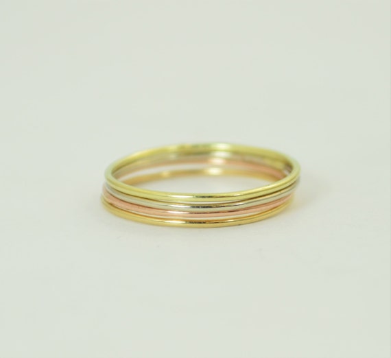 This 4 Ring Solid 14k Yellow, Rose White, and Green Gold Ring Set will make a gorgeous addition to your jewelry collection.