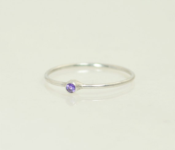 Tiny Amethyst Ring, White Gold Amethyst Stacking Ring, Amethyst...