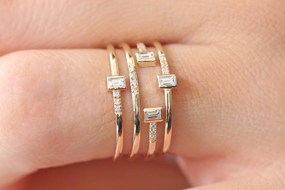 Baguette Diamond Ring / Diamond Stackable Band / 14k Solid Gold...