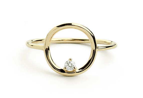 Open Circle Diamond Ring in 14k Gold / Unique Diamond Ring /...