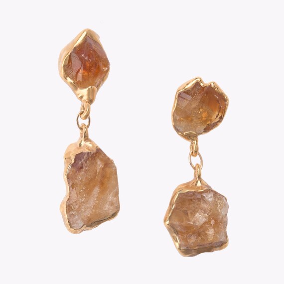 These one of a kind statement earrings are made with genuine raw citrine. The gemstone’s size and texture may vary slightly, some gems are slightly lighter or darker than the examples shown.