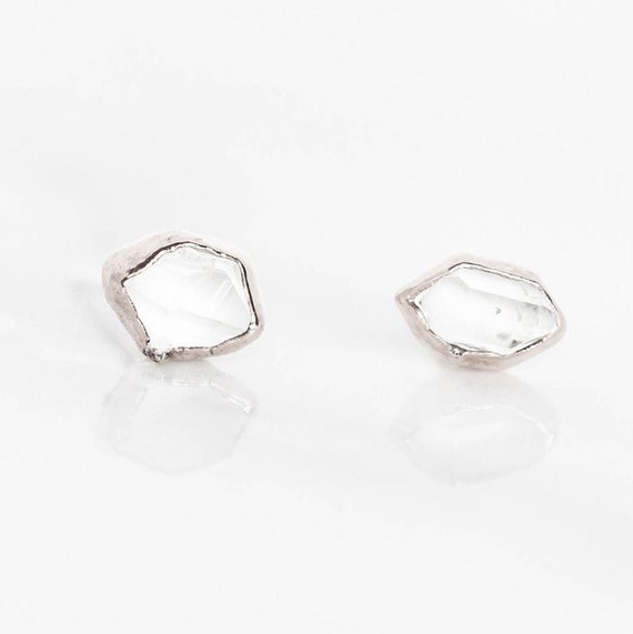 Raw Herkimer Diamond Earrings, Silver April Birthstone Earrings, Diamond Stud Earrings, Tiny Stud Earrings, Dainty Earrings, Raw Crystal by Ringcrush