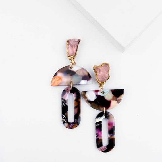 These one of a kind statement earrings are made with genuine raw rose quartz. The gemstone’s size and texture may vary slightly, some gems are slightly lighter or darker than the examples shown. Rose Quartz is an alternative birthstone to garnet for January babies.