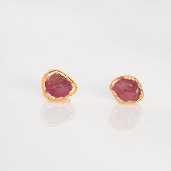 Raw Ruby Earrings, Gold Earrings, July Birthstone, Wedding Gift for Women, Tiny Stud Earrings, Dainty Earrings, Minimalist Stud Earrings by Ringcrush