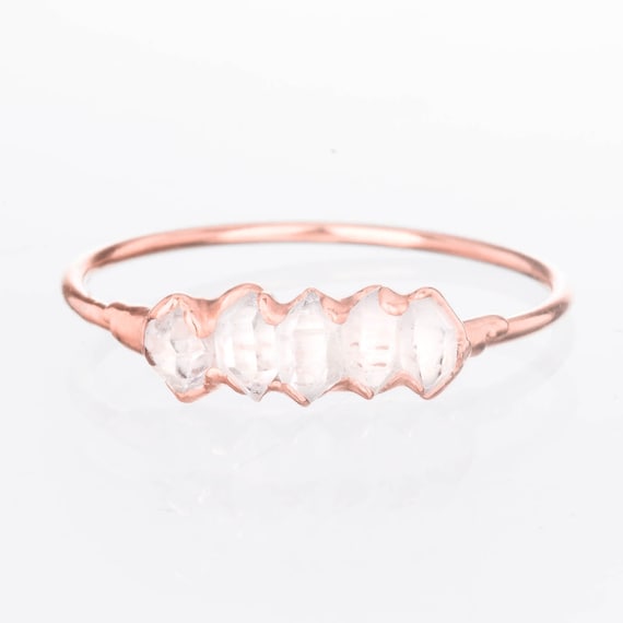 Rose Gold Herkimer Diamond Ring, Eternity Ring, Boho Ring, Rough Crystal Ring, Dainty Crystal Ring, Multi Stone Ring, April Birthstone Ring by Ringcrush