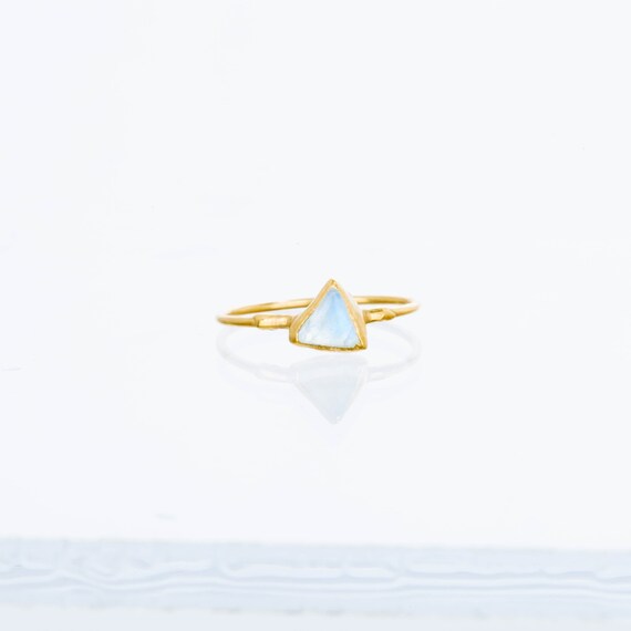 Triangle Moonstone Ring, Gold Ring, Celestial Jewelry, Moonstone Engagement Ring, June Birthstone Stone Ring, Crystal Ring Promise Ring Gift by Ringcrush