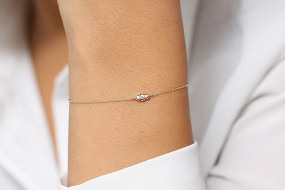 14k Gold Art Deco Chain Bracelet for Women Trio Diamond Station / Also available in 14k Rose Gold and 14k White Gold / Ferkos Fine Jewelry by FerkosFineJewelry