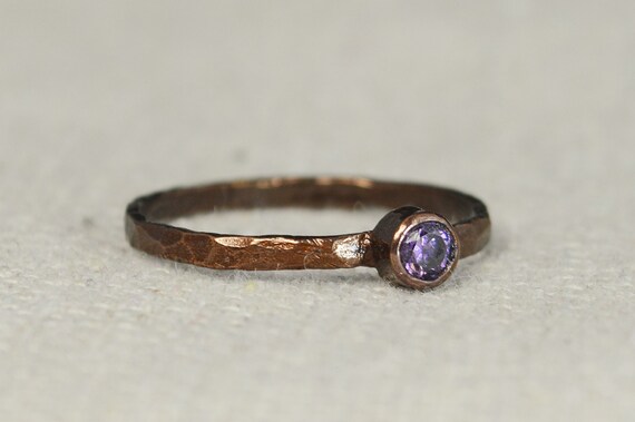 Bronze Copper Amethyst Ring, Classic Size, Stackable Rings,...