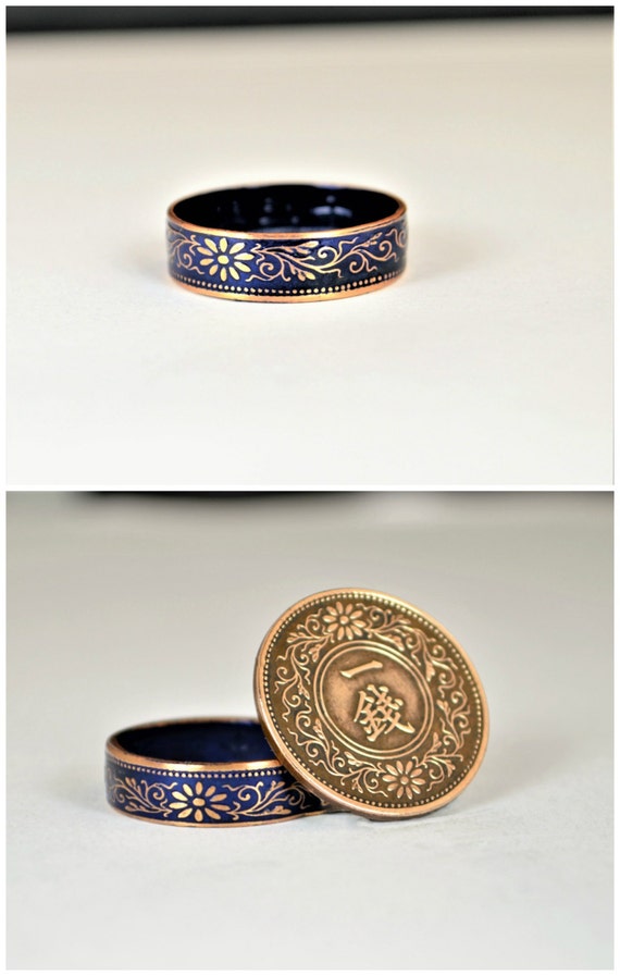 Coin Ring, Japanese Coin Ring, Coin Ring, Bronze Ring, Blue Ring, Japanese Jewelry, Coin Rings, Japanese Art, Coin Art, Japanese Ring by Alaridesign