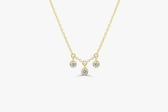 Dainty Diamond Choker Necklace / 14k Simple Gold Choker / Layering Necklace / 3 Diamond Dangling Everyday Choker / Cyber Monday by FerkosFineJewelry