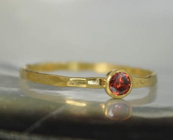 Dainty Solid 14k Gold Garnet Ring, Gold Solitaire, Solitaire...