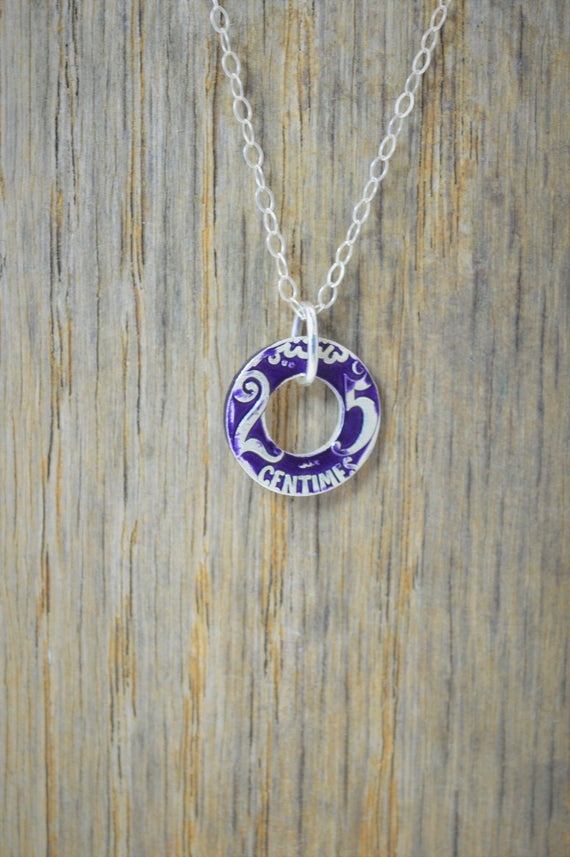 French Moroccan 25 Centimes Coin Necklace w/Purple nanoceramic: