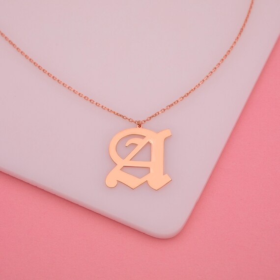 Personalized Necklace - Old English Initial Necklace - Dainty...