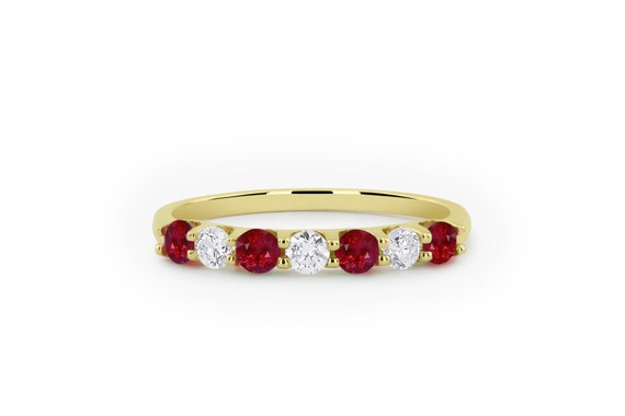 Ruby Diamond Wedding Band / Ruby Diamond Alternating Shared Prong Wedding Band / Natural Ruby Ring / Anniversary Band by FerkosFineJewelry