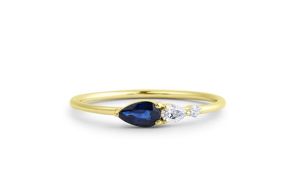 Sapphire Ring / 14k Gold Pear Shape Natural Sapphire with Pear...