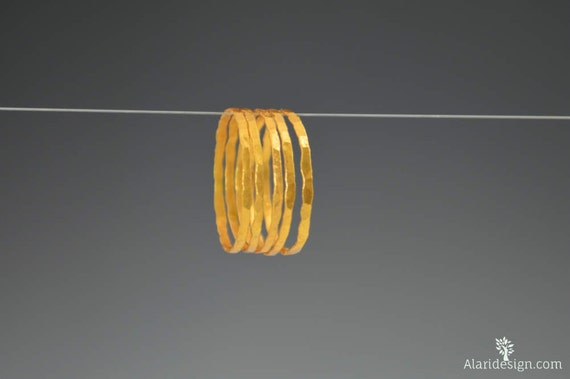 Set of 5 Gold Vermeil Stacking Rings, Super Thin Rings, Gold Stacking Rings, Thin Gold Ring, Dark Gold Ring, 24k Gold Ring, Gold Ring Set by Alaridesign