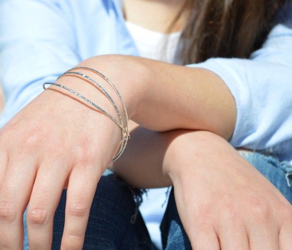 Dainty, rustic, and original. Each bangle is different as I leave the solder joint untouched adding texture, occasional “dew drops” of silver, and other “imperfections” that make each bangle perfect.