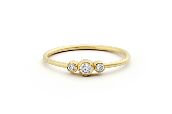 Three Stone Diamond Engagement Ring / 14k Gold Three Stone Round Brilliant Cut Diamond Engagement Ring / Dainty Three Stone Bezel Set Ring by FerkosFineJewelry
