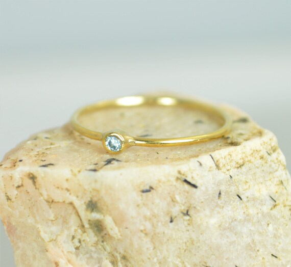 Tiny Aquamarine Ring, Solid 14k Gold Aquamarine Stacking Ring,...