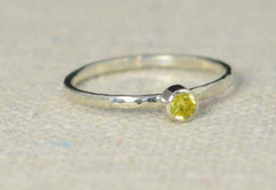 Classic Sterling Silver Topaz Ring, 3mm Silver solitaire, Yellow Ring, Silver jewelry, November Birthstone, Mothers Ring, Silver band by Alaridesign