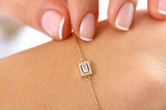 Diamond Bracelet / Baguette Diamond Bracelet in 14k Gold / Dainty Diamond Baguette Women’s Bracelet / Graduation Gift / Bridal Bracelet by FerkosFineJewelry