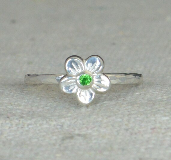 Emerald Flower Ring, Flower Ring, Floral Ring, Emerald Ring, Flower Jewelry, Sterling Flower Ring, Nature Ring, Flower Girl Ring, Dainty by Alaridesign