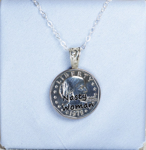 Women’s March on DC Necklace. Nasty Woman Necklace. Real Susan B Anthony Dollar, Sterling Bail, Sterling Filled Chain: