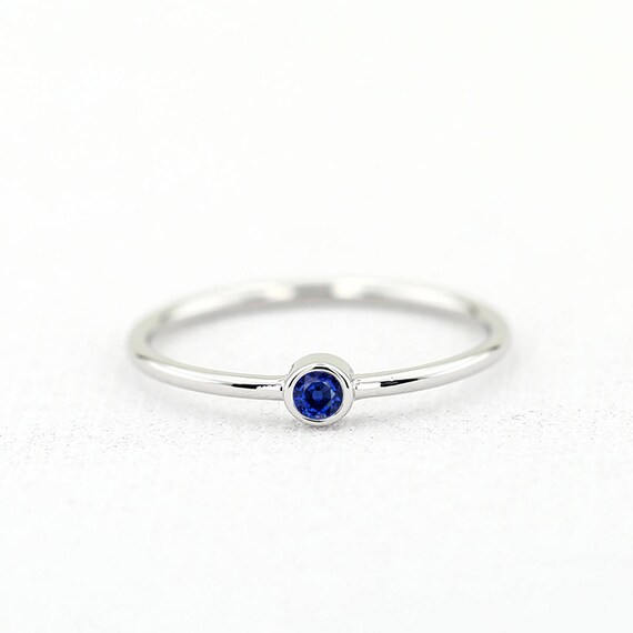 Sapphire Ring / 14k White Gold Single Blue Sapphire 0.08ctw Solitaire Ring / Blue Sapphire Gemstone Ring / September Birthstone Ring by FerkosFineJewelry