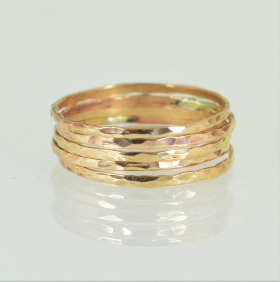Super Thin Bronze Stacking Ring(s), Hammered Bronze Ring, Simple...