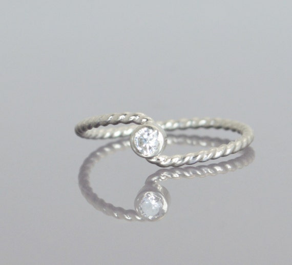 Wave Ring, Silver Wave Ring, CZ Diamond Mothers Ring, April Birthstone Ring, Silver Twist Ring, Unique Mother’s Ring, Diamond Ring, April by Alaridesign