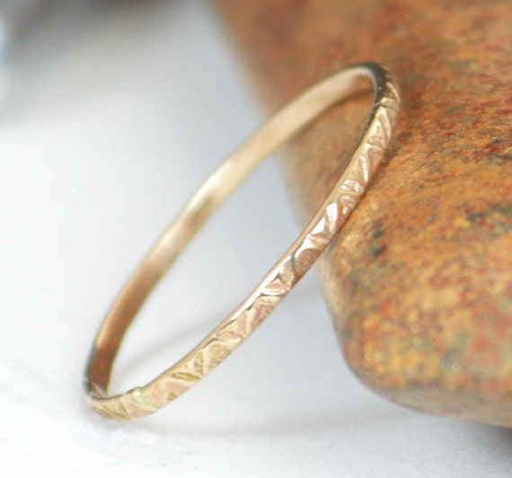 14k Gold Bohemian Ring, Rustic Wedding Ring, Thin Gold Ring,...
