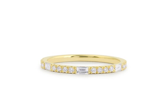 Baguette Diamond Ring / 14k Gold Baguette and Round Cut Diamond Wedding Band / Half Eternity / Stackable Diamond Ring / Anniversary Gift