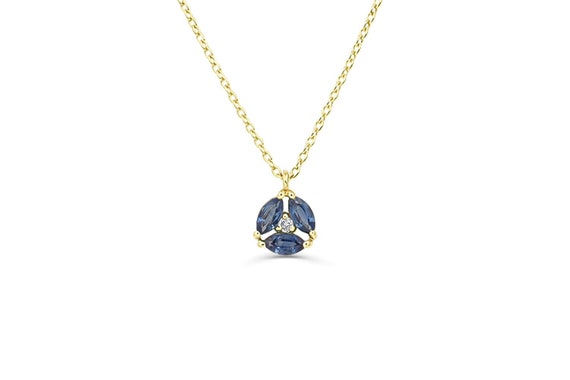 Blue Sapphire Necklace / Genuine Sapphire Necklace in 14k Gold /...
