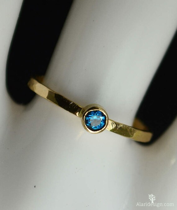 Classic 14k Gold Filled Blue Zircon Ring, Gold solitaire, solitaire ring, 14k gold filled, December Birthstone, Mothers Ring, gold band by Alaridesign