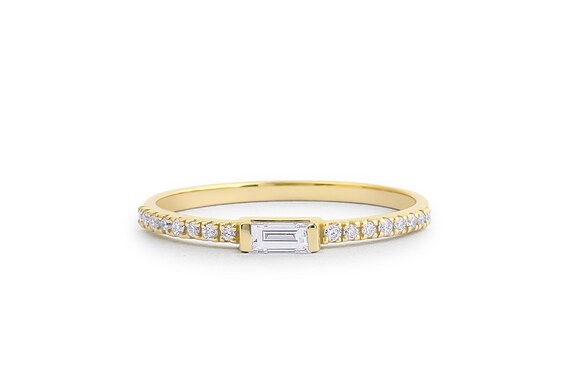 Diamond Engagement Ring / 14k Gold Thin Engagement Ring with Baguette Diamond / White Diamond / Stackable Ring / Baguette Diamond Ring by FerkosFineJewelry