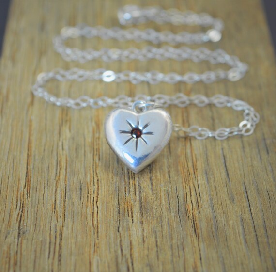 Garnet Mothers Necklace, Silver Heart Necklace, Garnet Necklace,...