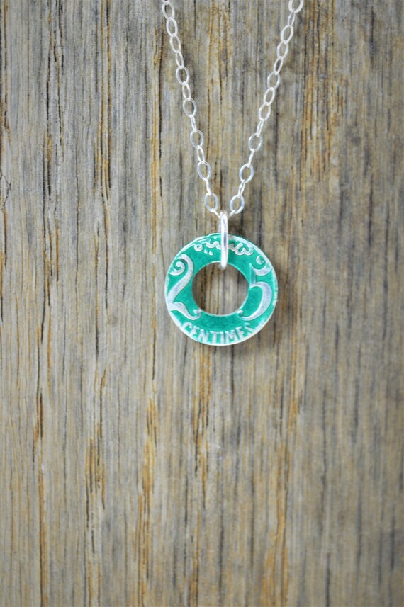 French Moroccan 25 Centimes Coin Necklace w/Green nanoceramic: