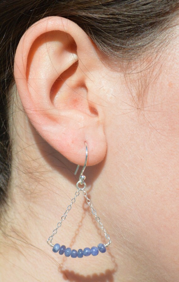 Delicate Dangle Earrings with Natural Blue Sapphire rondelles.