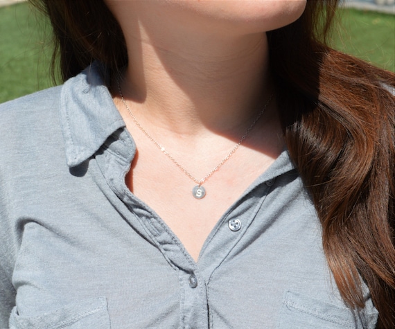 Tiny Sterling Silver Monogram Necklace, Monogram Necklace,...
