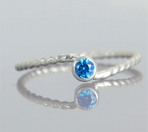 Wave Ring, Silver Wave Ring, Blue Zircon Mothers Ring, December...