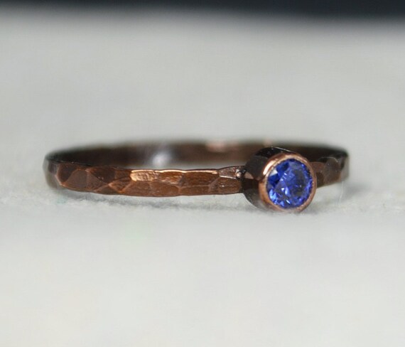 Bronze Copper Sapphire, Classic Size, Stackable Rings, Mothers Ring, September Birthstone, Copper Jewelry, Solitiare, Pure Copper, Band by Alaridesign