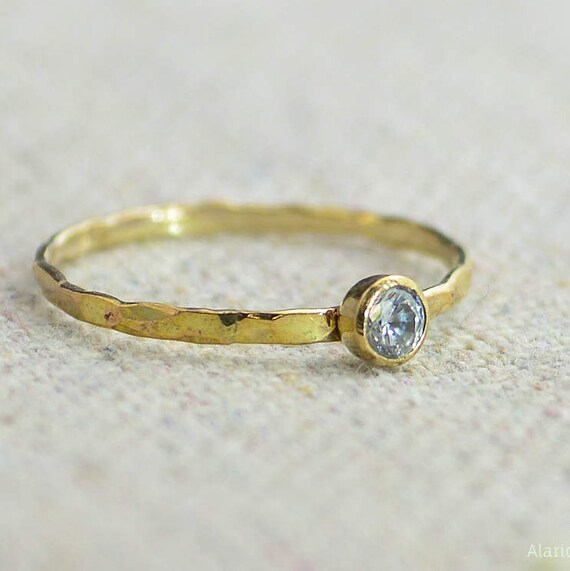 Dainty Gold Filled CZ Diamond Ring, Hammered Gold, Stacking Rings, Mothers Ring, April Birthstone Ring, Diamond Ring, Rustic Diamond Ring by Alaridesign