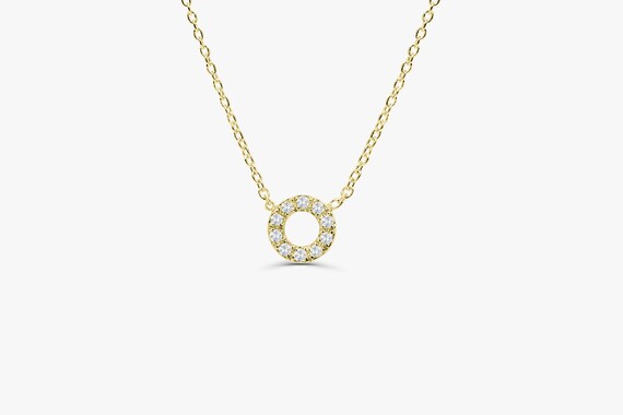 Diamond Circle Necklace / 14k Gold Mini Diamond Circle/ Open...